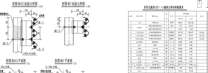 下面可參考三波形護欄BT端頭圖紙: