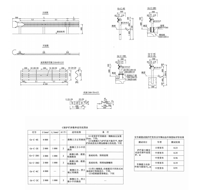 一、C級波形梁護欄一般構造示例如下圖所示: