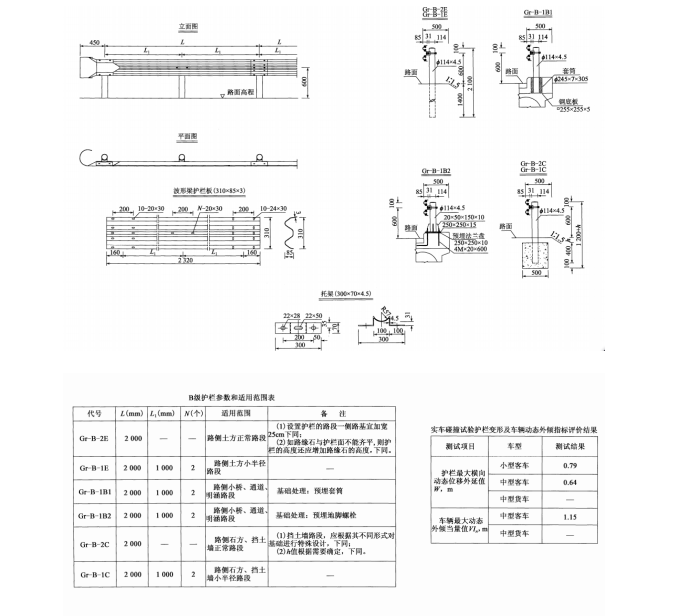 二、B級波形梁護一般構造示例如下圖所示: